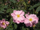 Shrub. Buck Roses Collection. Rose-pink, crimson streaks, stripes, flecks. Strong, fruity fragrance. Large, semi-double (9-16 petals) bloom form. Blooms in flushes throughout the season. USDA zone 4b through 9b. Height of 5' to 10' (150 to 305 cm). Width of 5' to 7' (150 to 215 cm). Dr. Griffith J. Buck (1962).