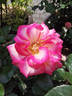 Hybrid Tea. Pink, darker center, white outer petals. Strong, fruity fragrance. Very large, very full (41+ petals), scalloped bloom form. Blooms in flushes throughout the season. Height of 31" to 35" (80 to 90 cm). Width of up to 2' (up to 60 cm). Michel Adam (2016).