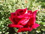 Hybrid Tea. Dark red. None to mild, raspberry fragrance. Very large, double (17-25 petals), borne mostly solitary, high-centered bloom form. Blooms in flushes throughout the season. USDA zone 6b and warmer. Height of 4' to 5' (120 to 150 cm). Dr. Keith W. Zary (1997).