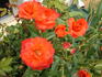 Hybrid Tea. Coral-red, ages to geranium-red . Strong, citrus, damask, fruity, spice fragrance. Very large, full (26-40 petals), borne mostly solitary, in small clusters, high-centered bloom form. Prolific, blooms in flushes throughout the season. USDA zone 7b through 10b. Height of 30" to 5' (75 to 150 cm). Width of 2' (60 cm). Mathias Tantau, Jr. (1912 - 2006) (1963).