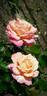 Hybrid Tea. Pink blend. Flowers phlox-pink, base canary-yellow,. Mild fragrance. Very large, full (26-40 petals), borne mostly solitary, cupped bloom form. Blooms in flushes throughout the season. USDA zone 7b and warmer. Height of 4½' to 6' 7" (135 to 200 cm). Stanley C. Johnston (1960).