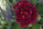 Shrub. English Rose Collection. Crimson, ages to purple . Strong, old rose fragrance. Large, very full (41+ petals), borne mostly solitary, in small clusters, cupped, quartered bloom form. Blooms in flushes throughout the season. USDA zone 5b through 9b. Height of 41" to 4' (105 to 120 cm). Width of 3' (90 cm). David C. H. Austin (1926-2018) (1994).
