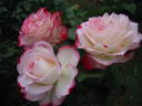 Floribunda, Grandiflora. Light yellow to white, vermilion edges. None to mild, sweet fragrance. Large, full (26-40 petals), cluster-flowered, in small clusters, cupped-to-flat bloom form. Blooms in flushes throughout the season. USDA zone 6b and warmer. Height: 28" to 35" (70 to 90cm). Width: 31" (80cm). Meilland (1940-....) (2000), Richardier (2000).