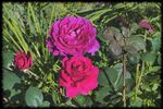 Hybrid Tea. Fuchsia-red, deep pink. Strong, citrus, rose fragrance. Large, full (26-40 petals), borne mostly solitary, in small clusters, cupped bloom form. Blooms in flushes throughout the season. USDA zone 5a through 9b. Height: 31" to 4'11" (80 to 150cm). Meilland International (2005).