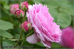 Shrub. (Series: English Rose Collection) Pink. Strong, lemon, tea fragrance. Large, very full (41+ petals), cluster-flowered, in small clusters, cupped bloom form. Prolific, blooms in flushes throughout the season. USDA zone 4b through 8b. Height: up to 39" (up to 100cm). Width: 30" (75cm). David C. H. Austin (1926-2018) (2002).