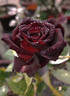 Florists Rose, Hybrid Tea. Dark red. None / no fragrance. Large, very full (41+ petals), borne mostly solitary, high-centered bloom form. Blooms in flushes throughout the season. USDA zone 7b and warmer. Height: up to 6' (up to 185cm). Jacques Mouchotte (2000).