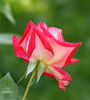 Hybrid Tea.   (Series: Couture Collection)  White, carmine-red edges, silver(y) reverse.  None to mild, rose fragrance.  Large, double (17-25 petals), classic hybrid tea, high-centered bloom form.  Blooms in flushes throughout the season.  USDA zone 6b through 9b (default).