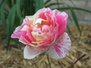 Miniature. White or white blend, stripes. Ever-changing white to yellow with red aging to pink. USDA zone 6b through 9b (default). Ralph S. Moore (1992).