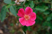 Blooms and foliage of the same rose growing under the live oak tree in San Antonio, Texas. The tiny yellow spots on the leaves are live oak pollen.