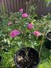 Flowers in spring 2023. Repeat’s gotten better now it’s been established a few years but normally it’s a bit more leafless. Have found with hybrid perpetuals in Sydney, their growth isn’t usually very strong so it’s best just to just leave them unpruned and it’ll form an acceptable (albeit often leafless) shrublet and actually repeat a bit. (Plant sent to me from Margaret Furness around 2018; was a bit neglected in 30cm pot for a few years but it’s slowly forming a plant now)