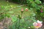 226 006 "Lauren's Gifford Rd Cl. HT". Own roots at Northcliffe, Nov 3, 2008. Bloom and bud. Disregard overhanging prickly cane from another rose.