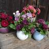 Florists Rose. Cream, green center. None to mild, myrrh, rose fragrance. Large, very full (41+ petals), cupped, ruffled bloom form. Blooms in flushes throughout the season.