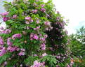 Hybrid Multiflora, Rambler. Light pink. Mild fragrance. Single (4-8 petals), in small clusters, in large clusters, ruffled bloom form. Spring or summer flush with scattered later bloom. USDA zone 5b through 9b. Height of up to 16' 5" (up to 500 cm). Width of up to 9' 10" (up to 300 cm). Luther Burbank (1932).