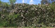 Hybrid Wichurana. Salmon-pink, copper shading, yellow shading, ages to cream . Strong fragrance. Large, semi-double (9-16 petals), cluster-flowered, in small clusters, in large clusters, flat bloom form. Occasional repeat later in the season. USDA zone 6b through 9b (default). Height of up to 19' 8" (up to 600 cm). Width of 18' (550 cm). Barbier Frères & Compagnie (1916).