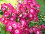 Polyantha. Rose-red, white center. None to mild fragrance. Small, single (4-8 petals), cluster-flowered, in large clusters bloom form. Blooms in flushes throughout the season. USDA zone 5b and warmer. Height of 39" to 5' (100 to 150 cm). Width of 3' (90 cm). Harkness & Co. (1977).