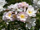 Rambler. Light pink. Flowers apple-blossom pink. Strong fragrance. Single (4-8 petals) bloom form. USDA zone 6b through 9b (default). Height of 18' (550 cm). Width of 15' (455 cm). Miss Brenda Colvin (1970).
