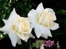 Floribunda / Cluster Flowered, Hybrid Tea / Large-Flowered. White or white blend. Strong fragrance. Large, full (26-40 petals) bloom form. Blooms in flushes throughout the season. USDA zone 7b through 10b. Height of 2' to 4' (60 to 120 cm). Width of 2' to 3' (60 to 90 cm). Harkness & Co. (1994).