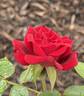 Miniature. Dark red. None to mild fragrance. Very large, semi-double (9-16 petals), borne mostly solitary bloom form. Blooms in flushes throughout the season. USDA zone 6b and warmer. Height of 13" to 15" (35 to 40 cm). Ralph S. Moore (1993).