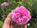 Centifolia, Hybrid Gallica. Pink. Strong, rose fragrance. Medium to large, very full (41+ petals), borne mostly solitary, in small clusters, nodding or "weak neck" bloom form. Once-blooming spring or summer. USDA zone 4b through 9b. Height: 5' to 6'11" (150 to 210cm). Width: up to 5' (up to 150cm). Unknown (1318).