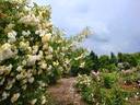 Polyantha. White. Small, single (4-8 petals), in large clusters bloom form. Blooms in flushes throughout the season. Height of 5¼' (160 cm). Width of 6' 7" (200 cm). John Nieuwesteeg (2013).
