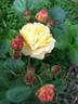 Hybrid Musk. Cool weather: Lemon gold, with dark amber blending. Hot Weather: Light yellow, becoming white.. Moderate, sweet fragrance. Small, very double, in large clusters, expanded , quilled, rounded bloom form. Moderate, continuous (perpetual) bloom throughout the season. Height of 3' to 4' (90 to 120 cm). Width of 3' to 4' (90 to 120 cm). 456 123 (2011).