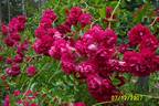 Hybrid Wichurana, Rambler. Cerise, white center, ages to scarlet . None / no fragrance. Small to medium, double (17-25 petals), in large clusters bloom form. Once-blooming spring or summer. USDA zone 5b through 9b. Height of 9' 10" to 20' (300 to 610 cm). Width of up to 12' (up to 365 cm). Michael H. Walsh (1908).