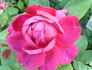 Hybrid Perpetual. Purple - red, violet shading. [Carmine-red, dark purple shading, blue highlights.]. Moderate, violets fragrance. Very large, full (26-40 petals), borne mostly solitary, in small clusters, button-eye, cupped-to-flat, globular bloom form. Blooms in flushes throughout the season. USDA zone 5b and warmer. Height of 6' to 7' (185 to 215 cm). Width of 5' (150 cm). Claude Ducher (1820-1874) (1865), Nicola Welter (1889).