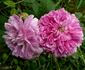 Gallica / Provins. Light pink, mauve streaks, stripes, flecks. Full (26-40 petals), button-eye bloom form. Once-blooming spring or summer. June Bell (1980).