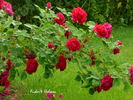 Hybrid Perpetual. Crimson - scarlet, dark red shading. Moderate fragrance. Large, full (26-40 petals), cupped, high-centered, open, scalloped bloom form. Blooms in flushes throughout the season. USDA zone 4b and warmer. Height: 4' to 5' (120 to 150cm). Width: up to 3' (up to 90cm). Eugène Verdier fils aîne (1865).