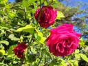 Hybrid Perpetual, Hybrid Tea. Scarlet - crimson. Reverse shaded crimson and maroon. Heavy drooping blooms. Strong, tea fragrance. Large, full (26-40 petals), nodding or "weak neck" bloom form. Blooms in flushes throughout the season. USDA zone 6b and warmer. Alexander Dickson II (1857-1949) (1912).