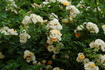 Hybrid Multiflora, Polyantha, Cl., Rambler. Light yellow, orange shading, ages to white . Moderate fragrance. Semi-double (9-16 petals), cluster-flowered, in large clusters, flat bloom form. Once-blooming spring or summer. USDA zone 6b through 9b (default). Height of up to 9' 10" (up to 300 cm). Width of up to 4' (up to 120 cm). George Paul (1841-1921) (1907).