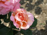 Hybrid Tea. Peach - pink, lighter reverse, ages to deep pink . Moderate, fruity fragrance. Very large, double (17-25 petals) bloom form. Blooms in flushes throughout the season. USDA zone 6b and warmer. Height: 42" to 4' (105 to 120cm). Colin P. Horner (1933-2005) (1983).