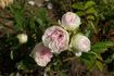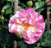 Hybrid Wichurana. Pink, white streaks, stripes, flecks, yellow stamens. None to mild fragrance. Medium, double (17-25 petals), in small clusters bloom form. Blooms in flushes throughout the season. USDA zone 6b through 9b (default). Height: 4'11" to 6'7" (150 to 200cm). Jean-Pierre Vibert II (2001).