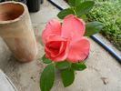 Large-Flowered Climber. Coral-pink. Mild fragrance. Medium to large, semi-double to double, in small clusters bloom form. Prolific, continuous (perpetual) bloom throughout the season. André Carl (2012).