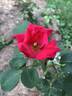 Hybrid Tea. Ruby-red. Moderate fragrance. Medium, semi-double (9-16 petals), borne mostly solitary, in small clusters, flat bloom form. Continuous (perpetual) bloom throughout the season. USDA zone 5b and warmer. André Carl (2011).