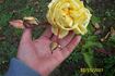 Found Rose, Tea. Strong clear yellow, deeper near nub, edges fading slightly paler. Strong, tea fragrance. Full (26-40 petals) bloom form. Height: 4'11" to 6'7" (150 to 200cm). Width: 4'11" to 6'7" (150 to 200cm).