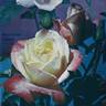Hybrid Tea. Cream, red edges, ages to light yellow . Moderate fragrance. Very large, double (17-25 petals), borne mostly solitary, in small clusters bloom form. Blooms in flushes throughout the season. USDA zone 6b through 9b (default). Jean-Marie Gaujard (1903-1995) (1967).