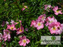Hybrid Rugosa, Hybrid Wichurana. Pink, golden-yellow stamens. Apple fragrance. Medium, single (4-8 petals) bloom form. Spring or summer flush with scattered later bloom. USDA zone 6b and warmer. Height of up to 2' (up to 60 cm). Width of up to 8' (up to 245 cm). James H. Bowditch (1919).