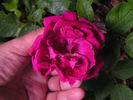 Gallica / Provins, Hybrid China. Red, violet shading, ages to violet . Strong fragrance. Medium to large, very full (41+ petals), button-eye, expanded bloom form. Once-blooming spring or summer. USDA zone 4b through 9a. Height: 3' to 7' (90 to 215cm). Width: 3' to 39" (90 to 100cm). Pierre Jean Louis Roëser (1829).