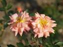 Miniature. Orange-pink, light yellow undertones. Double (17-25 petals), in small clusters, flat bloom form. Ernest D. Williams (1998).
