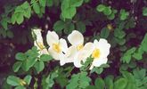 Hybrid Spinosissima. White. Single (4-8 petals) bloom form.