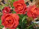 Floribunda, Hybrid Tea.   (Series: Easy-To-Love ™)  Russet, darker reverse.  Moderate, fruity fragrance.  Medium to large, full (26-40 petals), cluster-flowered, in small clusters, cupped, ruffled bloom form.  Blooms in flushes throughout the season.  USDA zone 6b and warmer.  Height: 3' to 6' (90 to 185cm).  Width: 4½' (135cm). Tom Carruth (2002).
