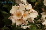 Hybrid Musk, Shrub.  Cream, yellow stamens.  Mild fragrance.  Large, single (4-8 petals), cluster-flowered, in large clusters bloom form.  Prolific, blooms in flushes throughout the season.  USDA zone 5b through 9b.  Height of 6'  to 12'  (185 to 365 cm).  Width of 3'  to 5'  (90 to 150 cm). Robert A. Holmes (1976).