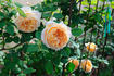 Shrub. (Series: English Rose Collection) Apricot - yellow, salmon-pink shading, golden-yellow reverse. Edges shaded pink. Strong, apple, clove, tea fragrance. Medium, very full (41+ petals), in small clusters, globular bloom form. Blooms in flushes throughout the season. Height: 43" (110cm). David C. H. Austin (1926-2018) (2009).