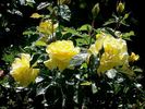 Floribunda.  Deep yellow.  Strong fragrance.  Medium, full (26-40 petals), borne mostly solitary, cluster-flowered, in small clusters, high-centered, ruffled bloom form.  Blooms in flushes throughout the season.  USDA zone 5b through 9b.  Height of 20" to 30" (50 to 75 cm).  Width of up to 2'  (up to 60 cm). Reimer Kordes (1922-1997) (1973).