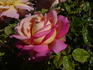 Hybrid Tea.  Rose-pink, yellow undertones, salmon-pink shading.  Strong, fruity, lemon, rose fragrance.  Very large, very double, borne mostly solitary, high-centered bloom form.  Blooms in flushes throughout the season.  USDA zone 7b and warmer.  Height: 3' to 4' (90 to 120cm).  Width: 2' (60cm). Robert V. Lindquist (1953).