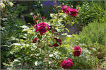 Shrub.  English Rose Collection.  Crimson, ages to purple .  Strong, old rose fragrance.  Large, very full (41+ petals), borne mostly solitary, in small clusters, cupped, quartered bloom form.  Blooms in flushes throughout the season.  USDA zone 5b through 9b.  Height of 41" to 4'  (105 to 120 cm).  Width of 3'  (90 cm). David C. H. Austin (1926-2018) (1994).