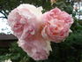 Damask Perpetual, Hybrid Spinosissima. White, light pink shading. [Light pink.]. Moderate fragrance. Medium to large, very full (41+ petals), flat bloom form. Occasional repeat later in the season. USDA zone 3b through 9b. Height of 6' to 8' (185 to 245 cm). James Lee (1821).