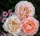 Shrub. (Series: English Rose Collection) Apricot - yellow, salmon-pink shading, golden-yellow reverse. Edges shaded pink. Strong, apple, clove, tea fragrance. Medium, very full (41+ petals), in small clusters, globular bloom form. Blooms in flushes throughout the season. Height: 43" (110cm). David C. H. Austin (1926-2018) (2009).