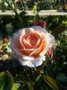 Hybrid Tea. White. Strong, citrus, fruity, old rose fragrance. Very large, full (26-40 petals), borne mostly solitary, cluster-flowered, in small clusters, high-centered, high-centered to cupped bloom form. Blooms in flushes throughout the season. USDA zone 6b through 9b (default). Height: 31" to 7' (80 to 215cm). Width: 2' (60cm). Alain Meilland (1940-....) (1996).